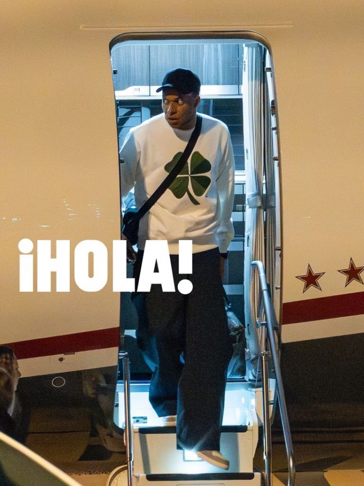 姆巴佩与爱珀斯托在法国巴黎共同度过了难忘的几天,随后他们乘坐私人飞机返回西班牙,一同降落在马德里。照片中可以看到,爱珀斯托身着牛仔裤和白色上衣、棕色外套,头戴棒球帽,走下私人飞机,姆巴佩则紧随其后,与他们同行的还有几位圈内朋友。